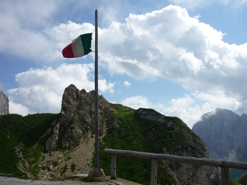 Tra sali e scendi e bei ponticelli di attraversamento di vari corsi d’acqua, raggiungiamo il sentiero CAI 136 che “circumnaviga” da Sud verso Nord, il Col di Caneva e che, in un altro km di strada, ci permette di ammirare in tutta la sua maestosità la Cima del Monte Peralba (2649 m) arroccata dietro ai suoi Torrioni, il Pic Chiadenis (2490 m) e la nostra prima meta della giornata, cioè il Rifugio Sorgenti del Piave dove, accanto ad esso, si trova il monumento ai Caduti della Prima Guerra Mondiale eretto sulla fonte da cui il Fiume Piave inizia il suo viaggio, attraversando il Veneto, verso il Mare Adriatico.