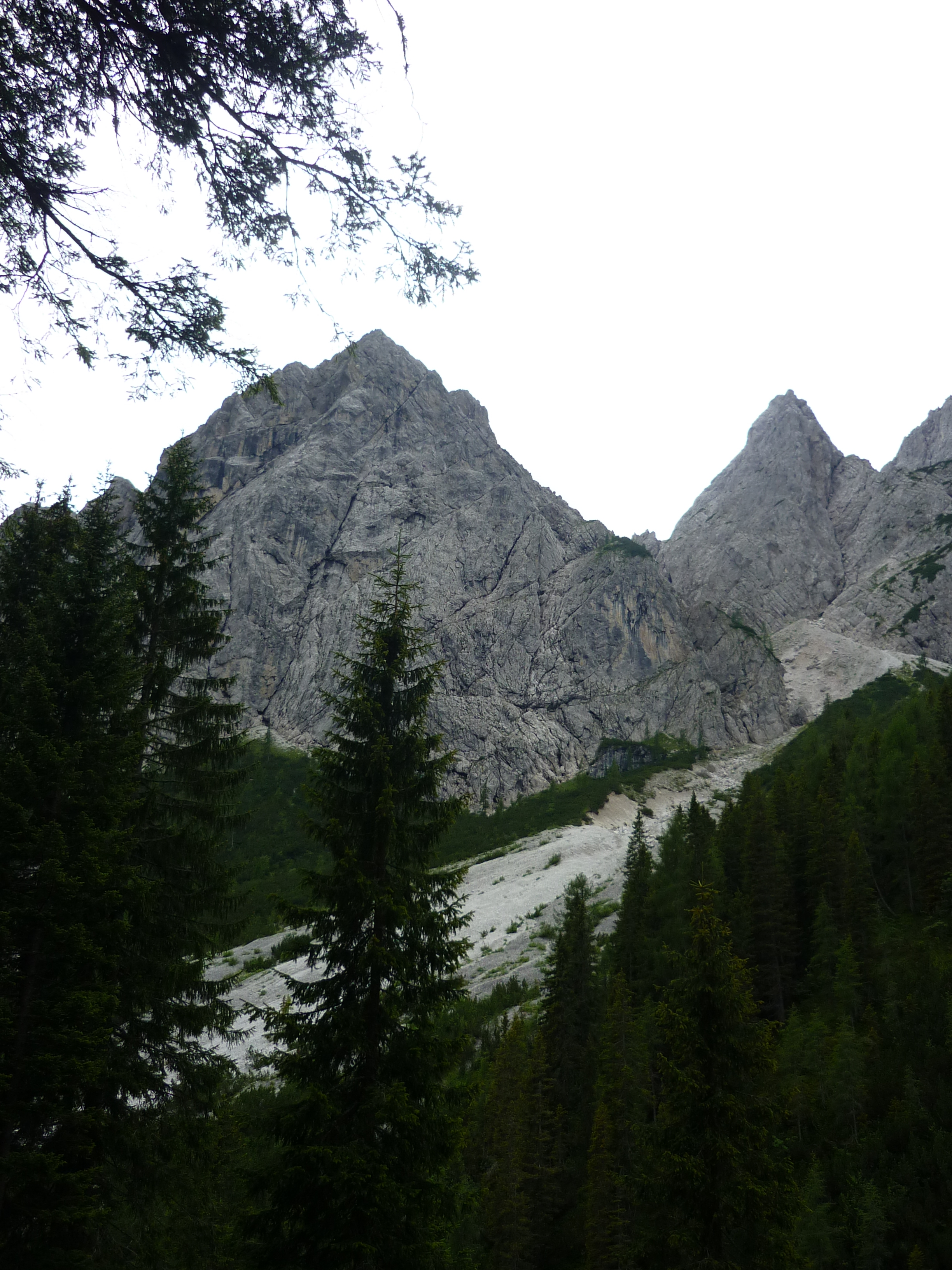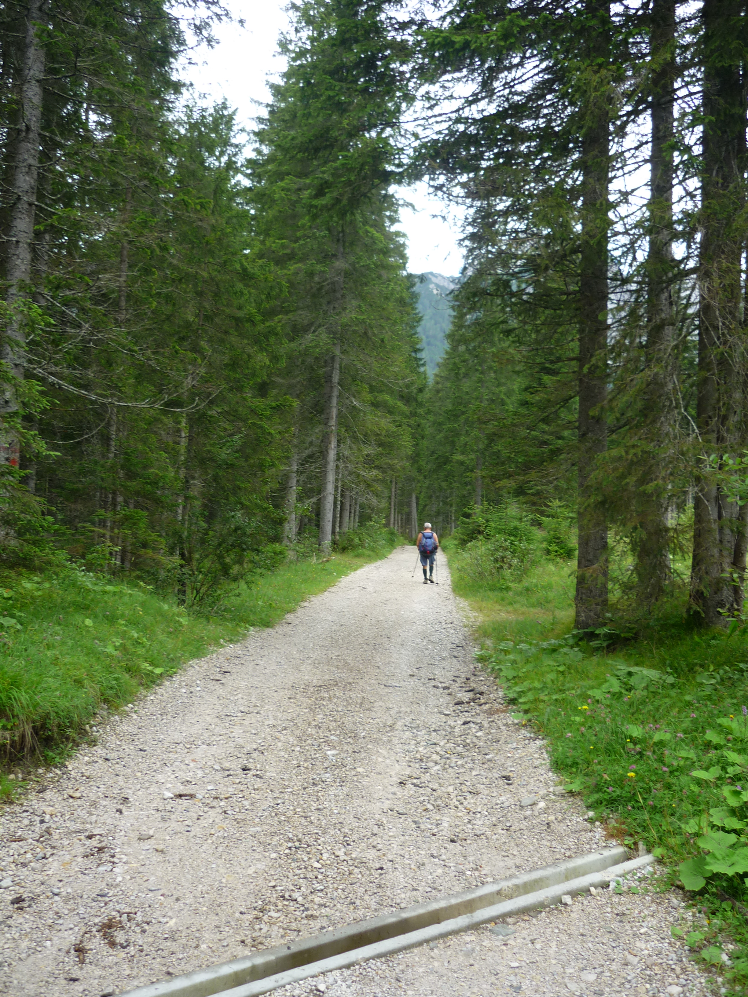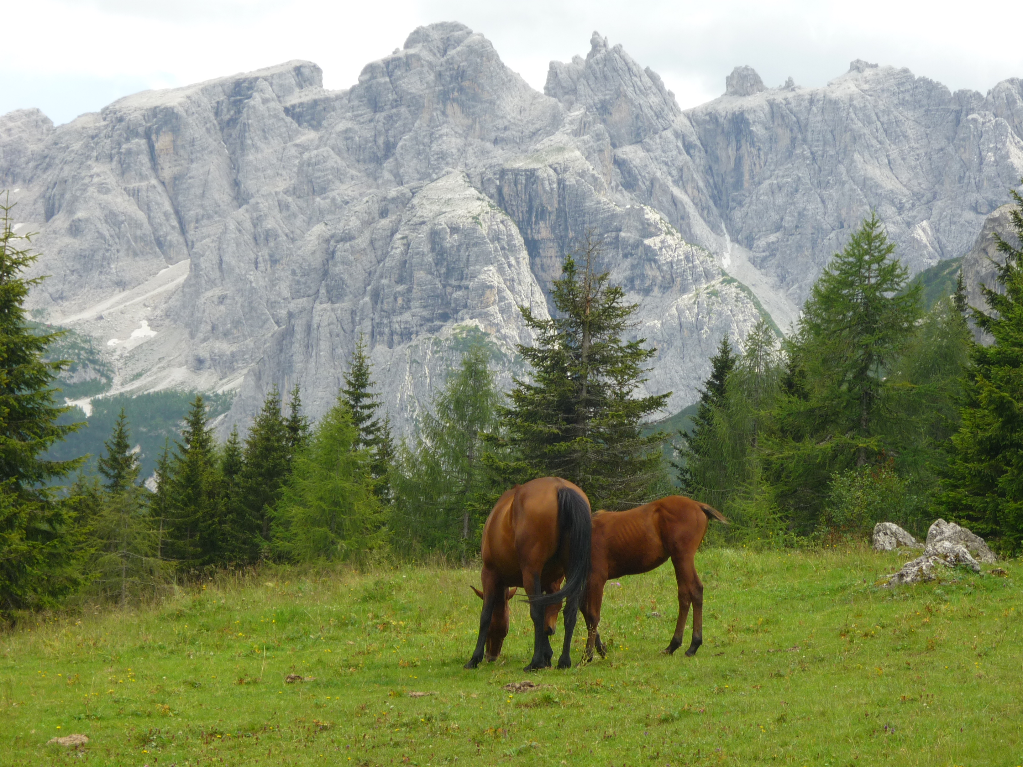 Da qui in avanti il dislivello inizia a diventare deciso e il bosco sempre più fitto e dopo mezz’ora di cammino incontriamo un segnavia che ci indica che siamo arrivati alle Paludi di Tamerle a 1400 m. Seguiamo quindi il sentiero CAI 309 sempre in direzione Passo Digola e, sempre in decisa salita, dal bosco ci accorgiamo che ci stiamo avvicinando al Monte Fiorito (2131 m) alla Croda Casara (2372 m) e alla Terza Media (2458 m), cosa questa, che ci fa capire che siamo in avvicinamento alla Casera Tamer di Dentro, infatti, a conferma di ciò, poco dopo, scorgiamo sotto il bosco un gruppo abbastanza numeroso di mucche che, distese all’ombra degli abeti riposano beatamente.
