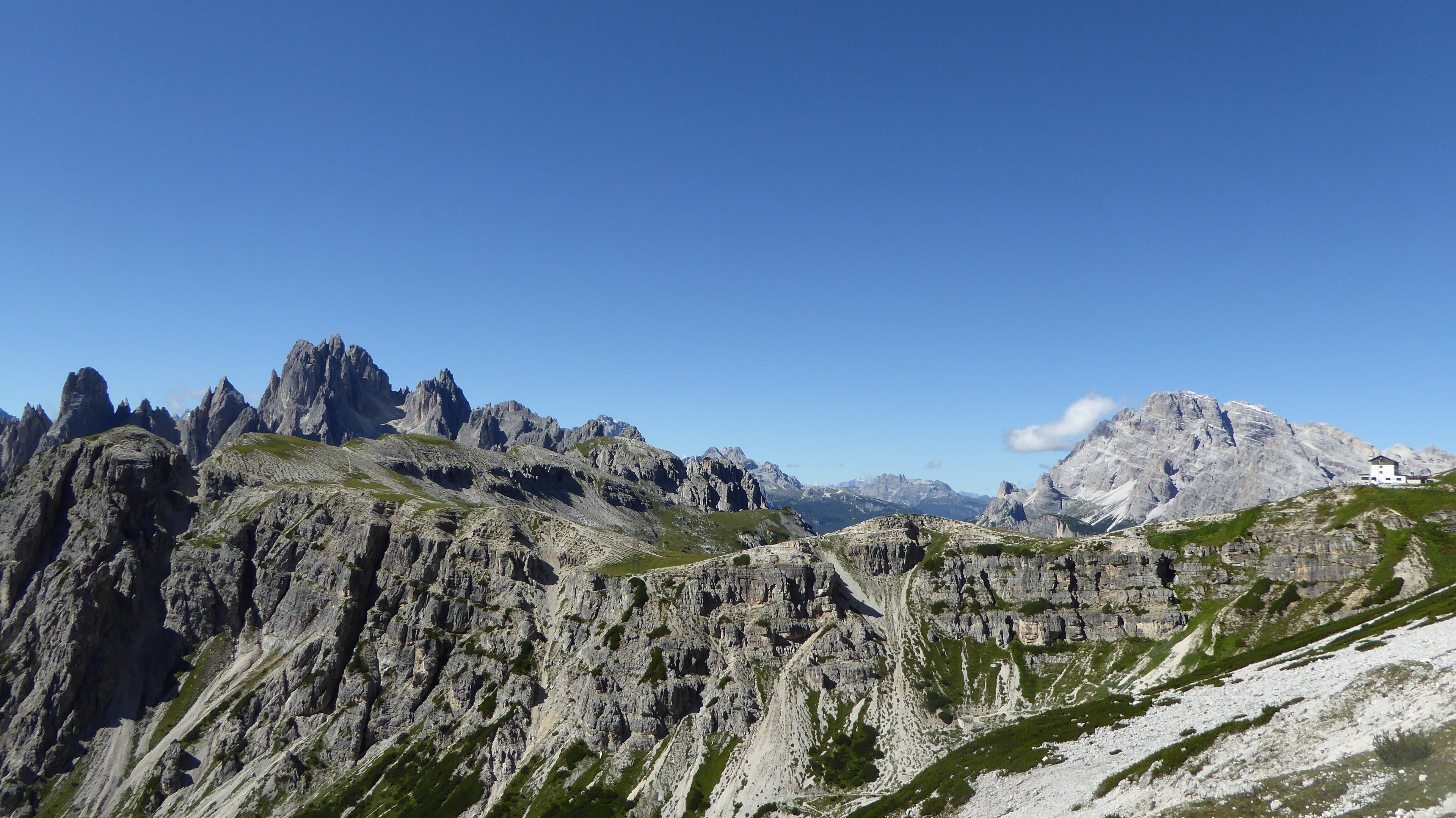 Da qui in poi, con una minima salita arriviamo ai 2344 m del Rifugio Lavaredo dove, girandosi verso sud é possibile ammirare le aspre e affusolate guglie del versante nord dei Cadini di Misurina.