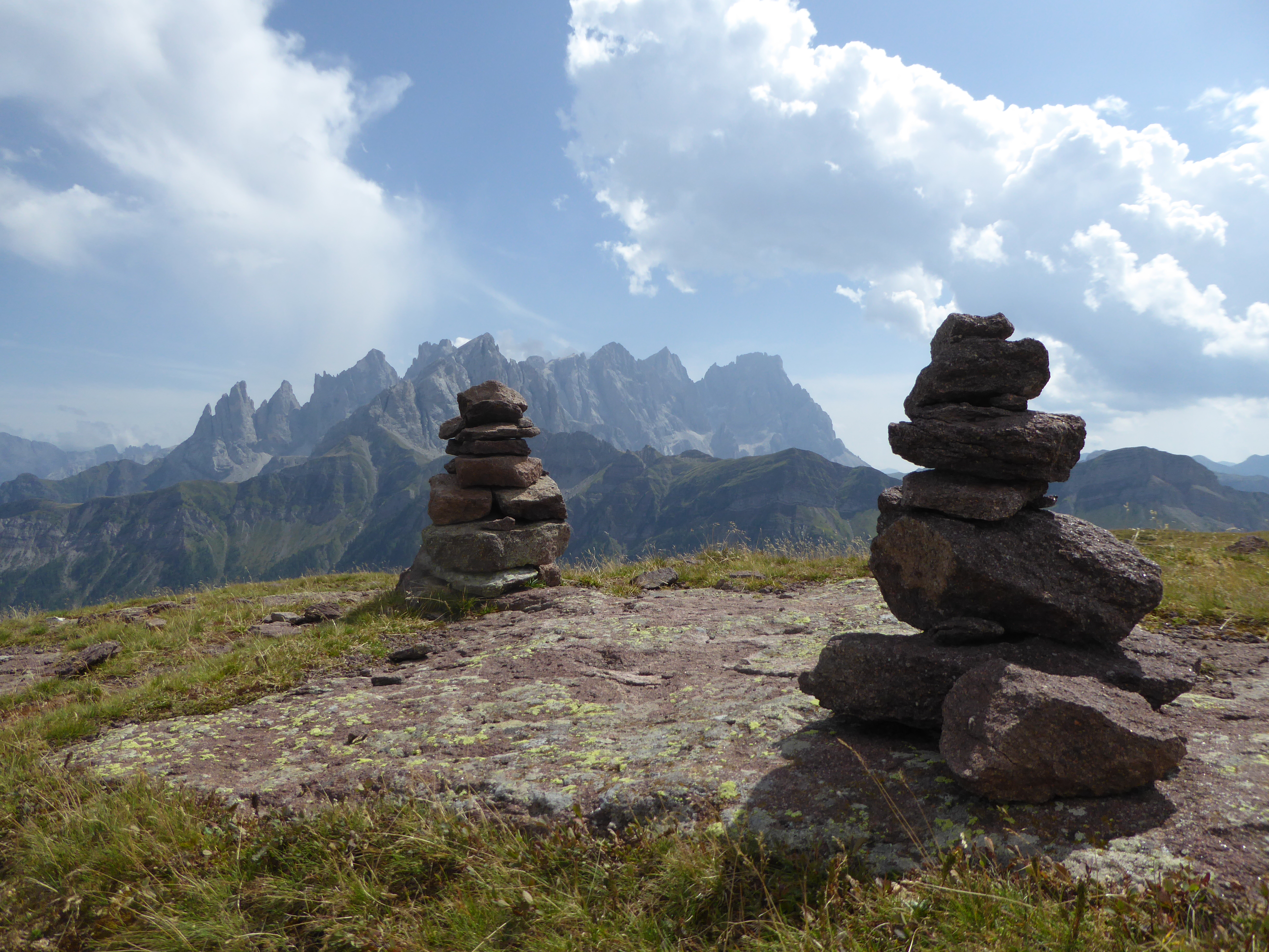 In meno di due ore abbiamo raggiunto una tra le terrazze più esclusive delle Dolomiti, lasciandoci letteralmente a bocca aperta. Infatti guardando verso est possiamo ammirare nell’immediata vicinanza il gruppo del Focobon e subito accanto le Pale di San Martino, ma andando oltre con lo sguardo riusciamo a scorgere anche La Schiara con le sue caratteristiche guglie che sovrastano Belluno.