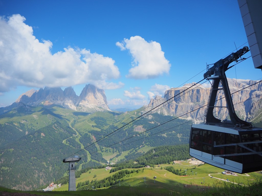 Risaliamo quindi alla stazione di monte della funivia a Col di Rosc, dove, con un po’ di malinconia, saliamo a bordo della navicella che piano piano fa sparire il massiccio della Marmolada dietro i boschi di Penìa e ci riporta a valle per terminare, ancora una volta, una giornata di trekking a dir poco splendida.