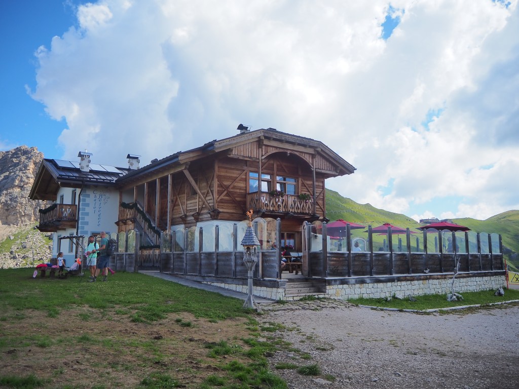 Il Rifugio, posto proprio a metà della Via, tra il Passo Pordoi e Fedaia, offre un bel terrazzo per ammirare ancora più da vicino la Marmolada e il Lago Fedaia e un ampia area all’aperto dove poter pranzare.