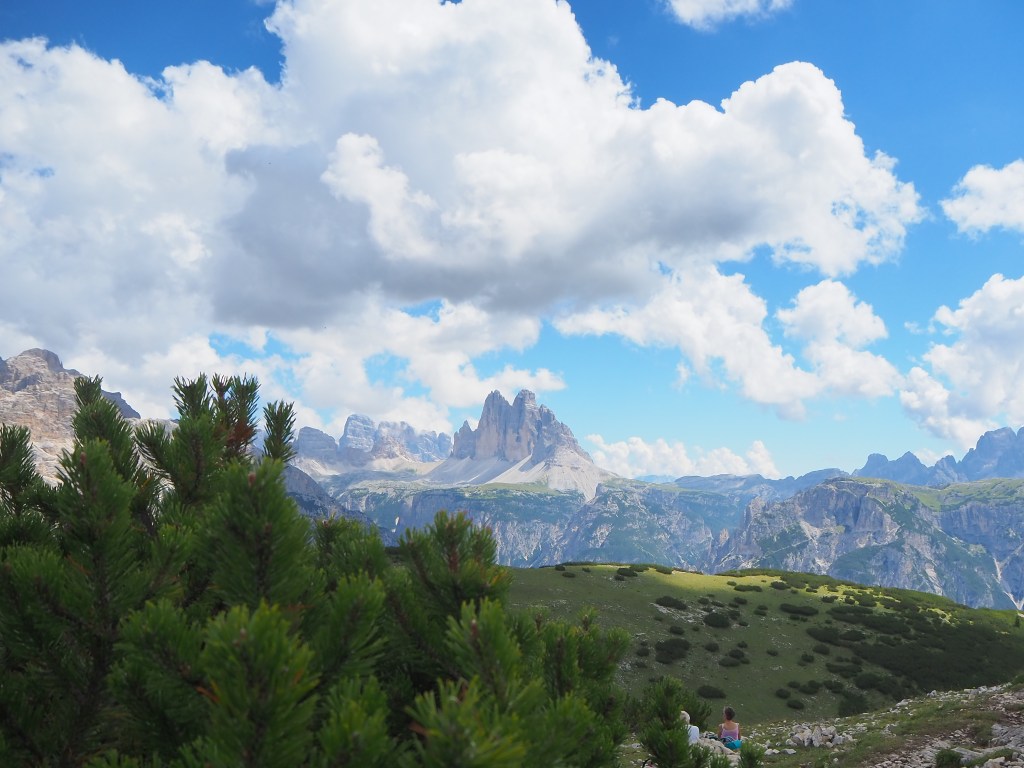 Da questo collinone roccioso, infatti la prima cosa che salta all’occhio è la vista inedita da Nord Ovest sulle Tre Cime di Lavaredo, belle come non mai, che svettano sopra la Val Rinbon.