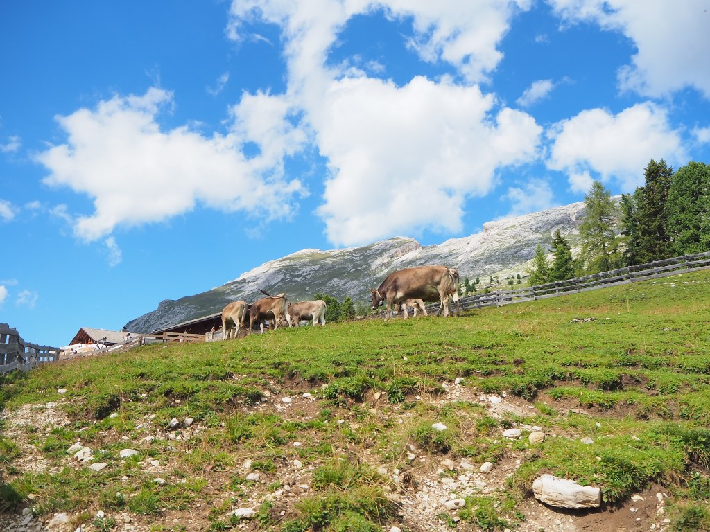 A circa metà della via verso il Rifugio Vallandro, attraversiamo uno steccato di legno e ci ritroviamo letteralmente catapultati in un pascolo alpino dove 100 e più mucche pascolano placide brucando l’erba accompagnate dal suono dei loro campanacci.