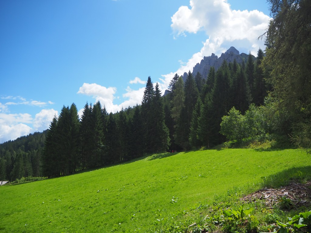 Scesi dall’auto veniamo subito avvolti da un bel paesaggio, ricco di prati verdi e boschi rigogliosi, dato che qui la tempesta Vaia ha risparmiato la sua furia distruttrice.
