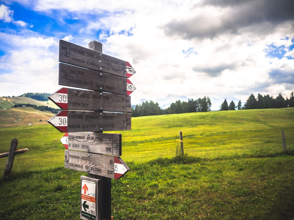 Oggi faremo un giro ad anello un po’ più lungo rispetto a quello precedente e con una altimetria un po’ più variabile. Seguiremo per buona parte il famoso Steger Weg, cercando di catturare le emozioni che i due pionieri dell’alpinismo Hans e Paula Steger, hanno provato, quasi 100 anni fa, attraversando questi luoghi fiabeschi. Andremo a caccia di nuovi panorami, nuovi scorci e nuove malghe e baite da poter ammirare e cercheremo di fare il pieno di emozioni prima di lasciare anche per quest’anno questo posto che ormai ci ha totalmente rapiti. Noi siamo pronti, ma fate attenzione al meteo ballerino, può sempre riservare sorprese, quindi non dimenticatevi l’attrezzatura pioggia sopra il letto! Si va!