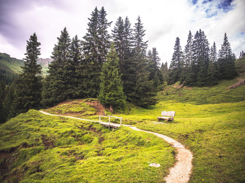 Dopo il temporale della notte, il meteo non sembra tanto dalla nostra parte quest’oggi ma decidiamo comunque di cercare un raggio di sole più in la che ci possa scaldare la giornata. Teniamo quindi sulla nostra destra il bel laghetto naturale che riflette la facciata dell’Hotel sulle sue acque verdi e ci dirigiamo verso Tuenehutte.