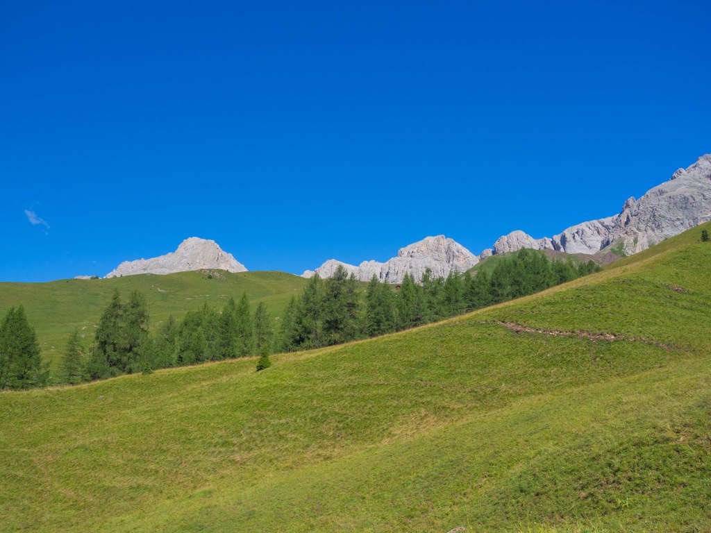 A far da cornice alla nostra camminata, sullo sfondo, il Monte le Saline (2402 m), Il Sas de Val Freida (3009 m), il Monte Formenton (2987 m) e più verso Est il Monte La Banca (2875 m) che si congiunge, scendendo verso la Forca Rossa, con il Col Becher (2444 m).