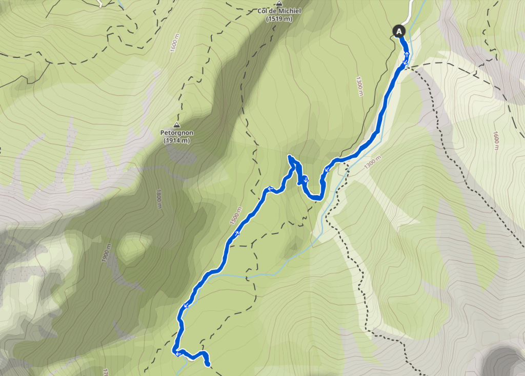 Dopo altri pochi minuti di camminata, arriviamo in località Pian di Palui a 1500 m. Giunti qui la salita impegnativa è superata e i bambini possono iniziare a godersi, avanzando in falso piano, i bellissimi prati verdi che ora, via via, andremo ad attraversare, incorniciati dalla ruvida Cima di Pramper (2409 m).