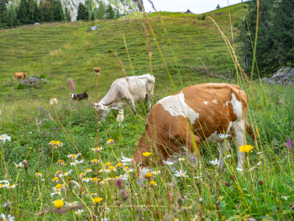 Da qui si torna a passeggiare in tranquillità, sotto al bosco, fiancheggiando il Colle degli Scoiattoli (1643 m). Affrontiamo una piccola discesa e quindi una salita e nuovamente un breve tratto di discesa per poi, in salita, uscire dal bosco e attraversare i bei prati della Malga che accolgono le mucche pascolare serene. Così, ai piedi del Monte Cimon (2422 m) posto alla nostra destra, saliamo sul colle dove è posta la Malga, affrontando gli ultimi due tornanti.