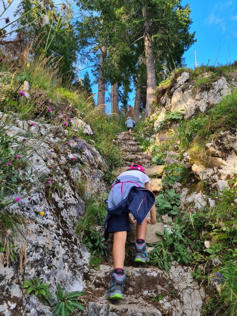 Di li a poco, inizia l’ultimo tratto di sentiero: una bella salita su una bella e ripida scaletta intagliata nella roccia, ci conduce finalmemte al terrazzo del Miravalle.