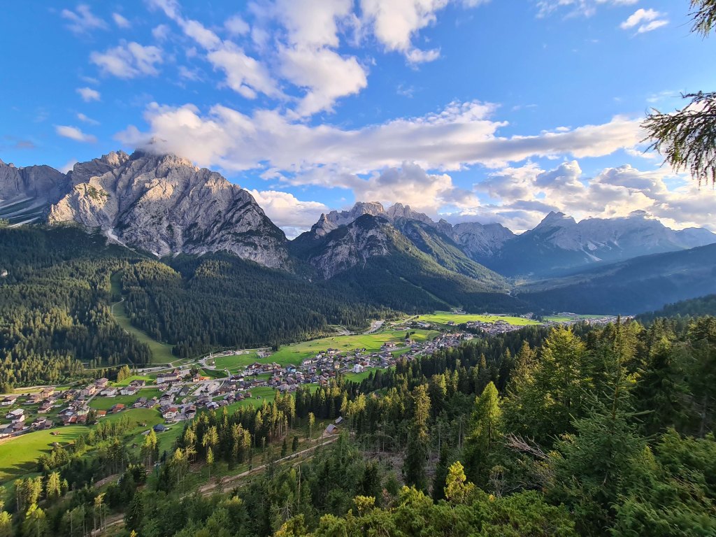 Da qua su il panorama è fantastico. Da Est verso Ovest abbiamo l’intera panoramica da Cima Sappada e Sappada: dal Monte Tuglia (1931 m), passando per la Creta Forata (2462 m) e il monte Siera (2443 m), il Creton di Clap Grande (2442 m) dietro al Col dei Mughi (1973 m), per poi passare alla Cresta di Enghe (2359 m) e poi rifinire, oltre il Passo Oberenghe, sulla Terza Grande (2586 m) e sulla Terza Media (2455 m). Lì, lo sguardo scorge nitidamente il Passo della Digola e va fino alla Terza Piccola (2334 m) oltre la quale termina Sappada.