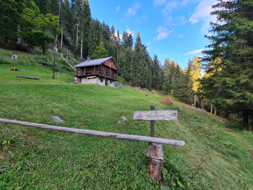 Partiamo quindi poco prima dell’ora di cena, verso le 18, da Borgata Fontana, dal parcheggio della pizzeria da Renato e, seguendo la strada in direzione Cima Sappada, raggiungiamo a piedi, il parcheggio dell’Hotel Valgioconda, a pochi metri di distanza. Svoltiamo quindi a sinistra, su una piccola stradina asfaltata che sale all’interno della borgata, tra l’Hotel Valgioconda e il Mublè Claudia e attraversiamo il piccolo e cartteristico caseggiato.