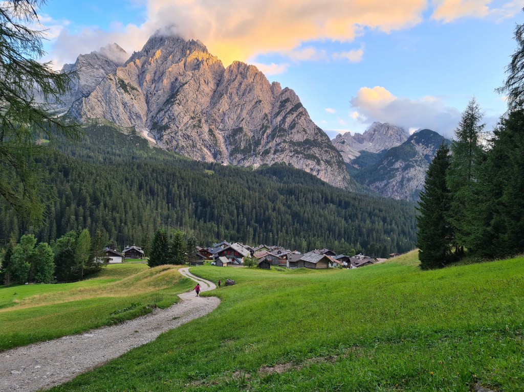 Qui il tricolore italiano sventola spinto dalla leggera brezza della sera e un’enorme scultura lignea del Cristo Crocefisso veglia sull’intera vallata sappadina.