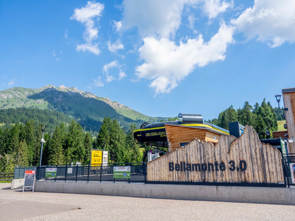 Con l’aiuto della bellissima cabinovia, composta di due tronconi, con stazione intermedia per accedere al Parco Giro d’Ali (qui abbiamo promesso ai nostri capi una giornata di giochi la prossima volta che torneremo da queste parti😊), ci portiamo in quota fino a 1916 m, dove troviamo il Lounge Bar, Chalet 44.