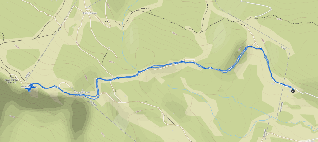 Un ultimo sforzo, ancora un po’ di salita e incontriamo il Ristoro La Cesela, chiuso, dopodichè la pendenza torna a farsi dolce e sempre più pianeggiante conducendoci sulla bellissima costa che sovrasta il bosco Fertazza, proprio sopra la Val Fiorentina. Ormai la nostra meta è a pochi passi e quindi non ci resta che proseguire ammirando il resto di panorama che si presenta davanti ai nostri occhi.