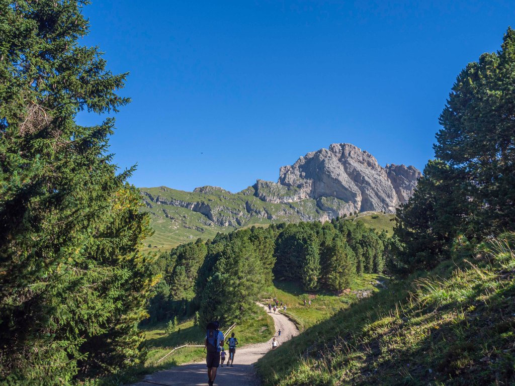 Da lì a poco riprendiamo il nostro cammino perché non è ancora finita. Comunque, da qui seguendo il sentiero 4, è possibile, in una decina di minuti, raggiungere il Rifugio Col Raiser per scendere con la cabinovia, ma sarebbe necessario farsi bene i conti e non dipendere dal passo dei bambini che hanno bisogno dei loro tempi, dato che gli impianti purtroppo chiudono alle 17.00. Noi ovviamente tra una cosa e l’altra sforiamo sempre😂.