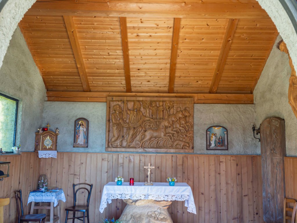 Dato che le tappe da qui in avanti saranno molte decidiamo di non fermarci troppo in ognuna di esse, ma solo per il classico timbro sul Passaporto delle Dolomiti e bere un goccio d’acqua. Nel ripartire dal Rifugio Fermeda, ecco che la nostra attenzione viene subito catturata da una piccola chiesetta in pietra in mezzo al prato dell’Alpe Mastlè e decidiamo, con una breve deviazione rispetto al sentiero ufficiale, di raggiungerla. Questo cappellina sorge su un punto sufficientemente isolato per renderla un luogo di raccoglimento per chi volesse soffermarsi e meditare immerso nelle meraviglie del creato.