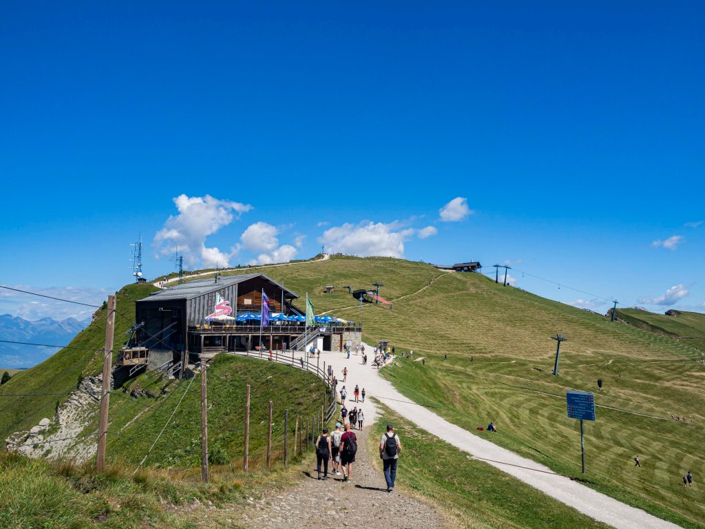 Più su ancora, dopo un altro breve tratto di salita, raggiungiamo quindi il Rifugio Seceda a 2450 m dove arriva il secondo troncone della funivia di Ortisei. Questo sorge a strapiombo sul crinale del Monte Seceda, dal quale è possibile ammirare il Monte Resciesa (2281 m) e sotto di esso Ortisei. Inoltre, dal rifugio, proseguendo verso destra, è possibile raggiungere la cima vera e propria del Monte Seceda, a 2518 m, dove è posta una bellissima e grandissima croce con Cristo in legno scolpito.