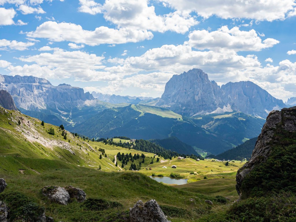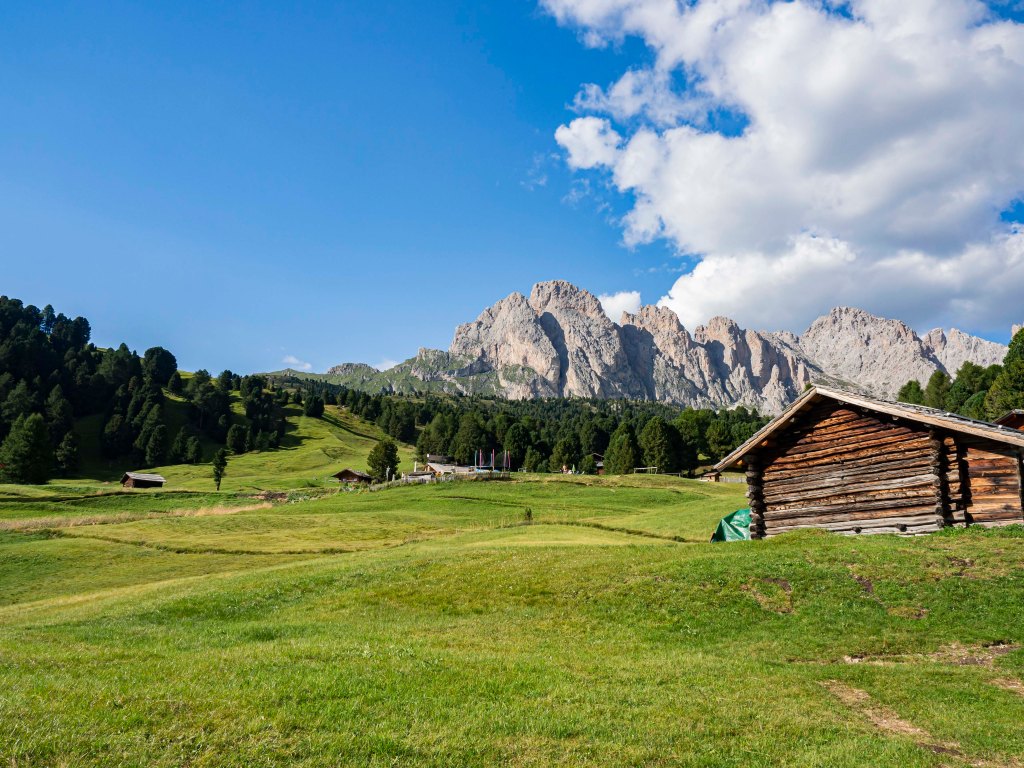 Una volta usciti dalla stazione di monte che è inglobata nel rifugio, possiamo ammirare il panorama che ci accompagnerà alle spalle per tutta la giornata. Una visuale da restare a bocca aperta sulla Val Gardena con, a farle da cornice i possenti Sasso Lungo e Sasso Piatto e quindi il Catinaccio che tengono incastonato tra di loro, verdissimo, l’altopiano dell’Alpe di Siusi. Di fronte a noi, in direzione Nord, il versante Sud delle Odle che sfiorano i 3000 m e lo si percepisce fin da subito.