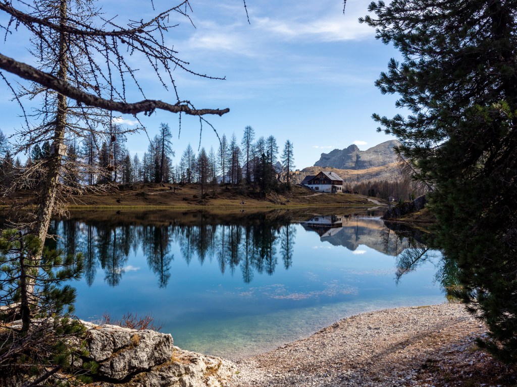 Pochi passi, quindi, e raggiungiamo il Rifugio Palmieri (2046 m), da dove, nell’immediato rimaniamo catturati dalla bellezza del Lago Federa, poco più sotto, ma questo non è nient’altro che l’inizio.