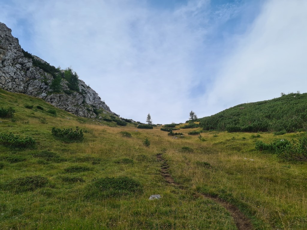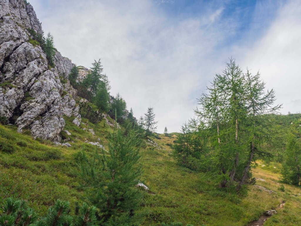 Tuttavia il sentiero è ben battuto e i segnavia di certo non mancano quindi le possibilità di sbagliare sono minime: si prosegue naturalmente con la meta sempre davanti a noi, facendo qualche zig-zag tra rocce, sassi, alberi e pini mughi, sempre in costante salita.