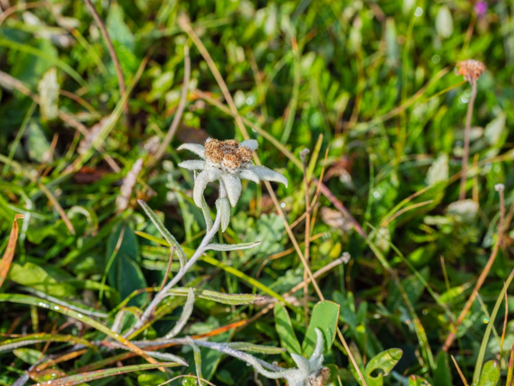 Passato questo punto il sentiero è nuovamente di facile intuizione, le uniche cose a cui dobbiamo pensare sono: gestire le forze per affrontare la pendenza che aumenta sempre di più e ammirare le stelle alpine che aumentano e vista d’occhio sui prati che via via andiamo ad attraversare. (Mi raccomando, la stella alpina è un fiore protetto, ammiratela, fotografatela, ma lasciatela li, non raccoglietela!👨🏻🏫)